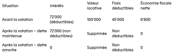 Aussi bien les partisans que les opposants n’ont, selon moi, apporté d’exemples concrets et chiffrés. Or, tout indique que les seuls véritables gagnants, si la votation passait, seraient les riches propriétaires à la retraite — mais attention : uniquement ceux qui auraient maintenu leur dette au plus haut afin de profiter du système actuel, puis qui, une fois retraités, changeraient soudainement de stratégie en amortissant intégralement leur dette d’un seul coup. On peut légitimement se demander si certains partisans de la réforme ne sont pas eux-mêmes dans cette situation… 😉Si tel était mon cas, j’aurais beaucoup de mal à défendre sans scrupule un tel état de fait. Rappelons tout de même qu’il s’agit d’une infime minorité.